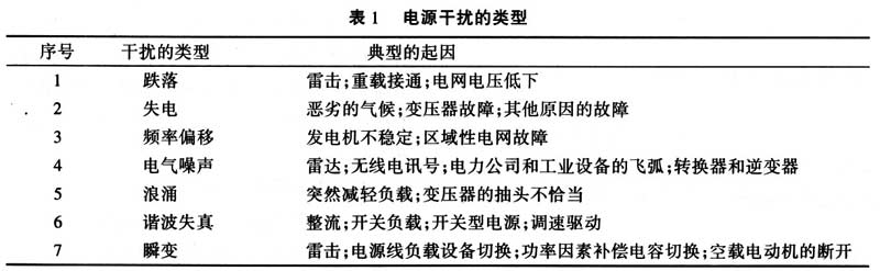 開關(guān)電源外部干擾可以以“共模”或“差模”方式存在。干擾類型可以從持續(xù)期很短的尖峰干擾到完全失電之間進行變化。其中也包括電壓變化、頻率變化、波形失真、持續(xù)噪聲或雜波以及瞬變等,電源干擾的類型見表1。